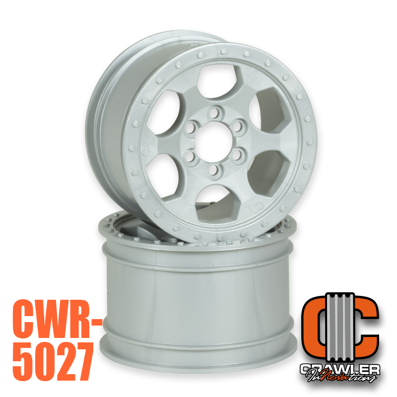 Crawler Innovations is happy to bring another new product to the RC Crawling market. The 6 Bolt Performance Wheel is a glue on wheel with a 2.2″ bead size, is 1.50″ wide, and is designed to be used with Vanquish Products SLW hubs. The Axial Trail Ready plastic hubs also fit these wheels for the weight conscious comp crawler. 12 Stainless Steel Button Head hardware included. The is the lightest weight 2.2 competition wheel / rim on the market. These wheels really shine in the U4RC genre of rc racing. The plastic combined with the aluminum hex create a basher and racer friendly combo. The plastic wheel will flex on hard impacts while the aluminum hex prevents stripping.