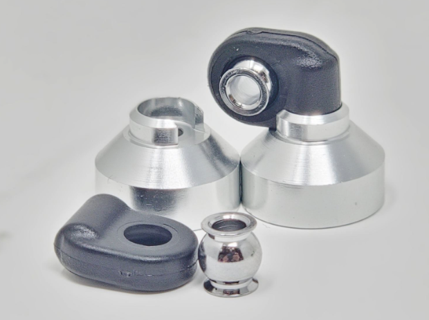 Compact Offset Shock Cap for the Dlux, Dravtech, or the Traxxas Big Bore (2660, 2661 and 2662). It allows you to have the same shock travel but with lower total length of the shock.